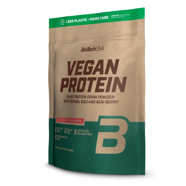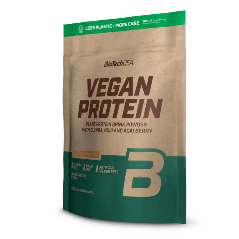 Vegan Protein je ochutený rastlinný bielkovinový nápojový prášok, ktorý vďaka komplexu ryžových a hrachových bielkovín, ako aj pridanému L-glutamínu a L-arginínu podporuje nárast svalovej hmoty a každodenný príjem bielkovín. Vďaka ľahko rozpustnej receptúre a lahodným príchutiam je ideálnou voľbou nielen pre vegánov. Ochutený rastlinný bielkovinový nápojový prášok, s práškom z bobúľ goji a acai, s múkou quinoa a so sladidlami. Bez lepku, gmo, laktózy, cukru.