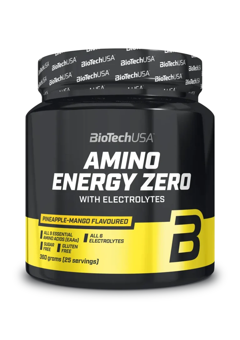 Zloženie: Objemové činidlo (polydextróza), kyselina (kyselina citrónová), instantný L-leucín (L-leucín, emulgátor: lecitíny, maltodextrín) 11%, L-glutamín 10,7%, L-arginín hydrochlorid 6,5 %, L-izoleucín 5,4%, L-valín 5,4 %, arómy, draselné soli kyseliny ortofosforečnej, vápenaté soli kyseliny citrónovej, taurín, citran sodný, beta-alanín, L-lyzín hydrochlorid 2,2%, L-histidín hydrochlorid 2,2%, chlorid draselný, L-tyrozín 1,8%, extrakt z listov zeleného čaju (Camellia sinensis), L-treonín 0,7%, L-metionín 0,7%, L-tryptofán 0,7%, L-fenylalanín 0,7%, oxid horečnatý, bezvodý kofeín 0,61%, sladidlo (sukralóza), extrakt zo zŕn zelenej kávy (Coffea canephora), pyridoxínhydrochlorid, farbivá (tartrazín1, indigotín). Tartrazín: môže mať nepriaznivé účinky na činnosť a pozornosť detí.Vyrobené v závode kde sa spracovávajú potraviny obsahujúce mlieko, vajcia, lepok, sóju, kôrovce, oxid siričitý a orechy.