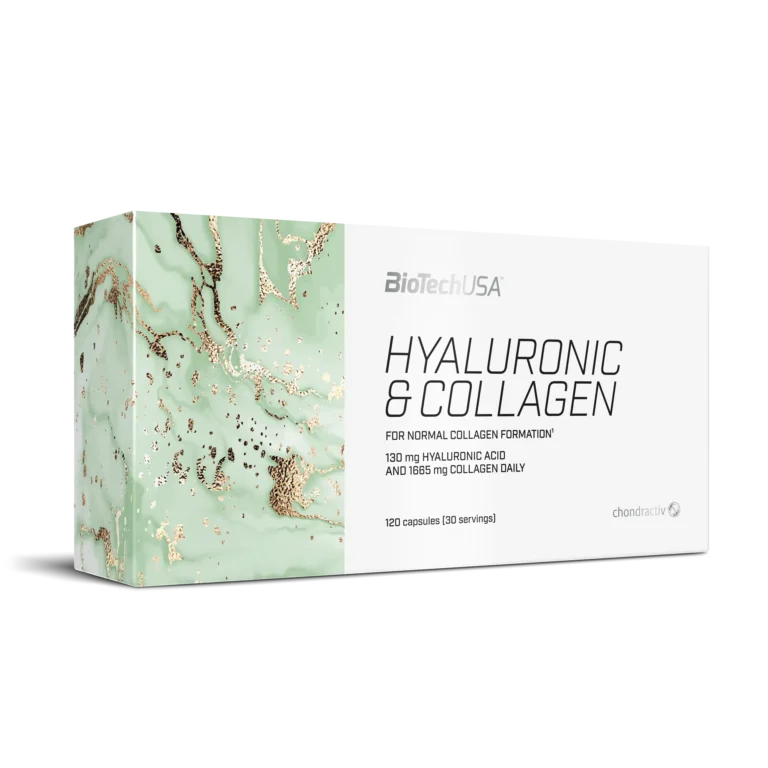 Výživový doplnok vo forme kapsúl s kolagénom, kyselinou hyalurónovou, vitamínmi a aminokyselinami. Bez lepku, laktózy, cukru.