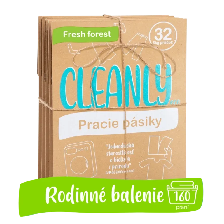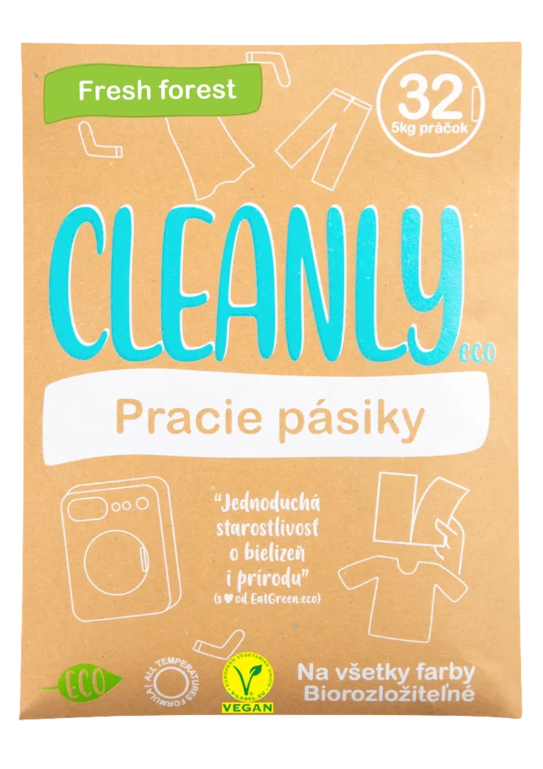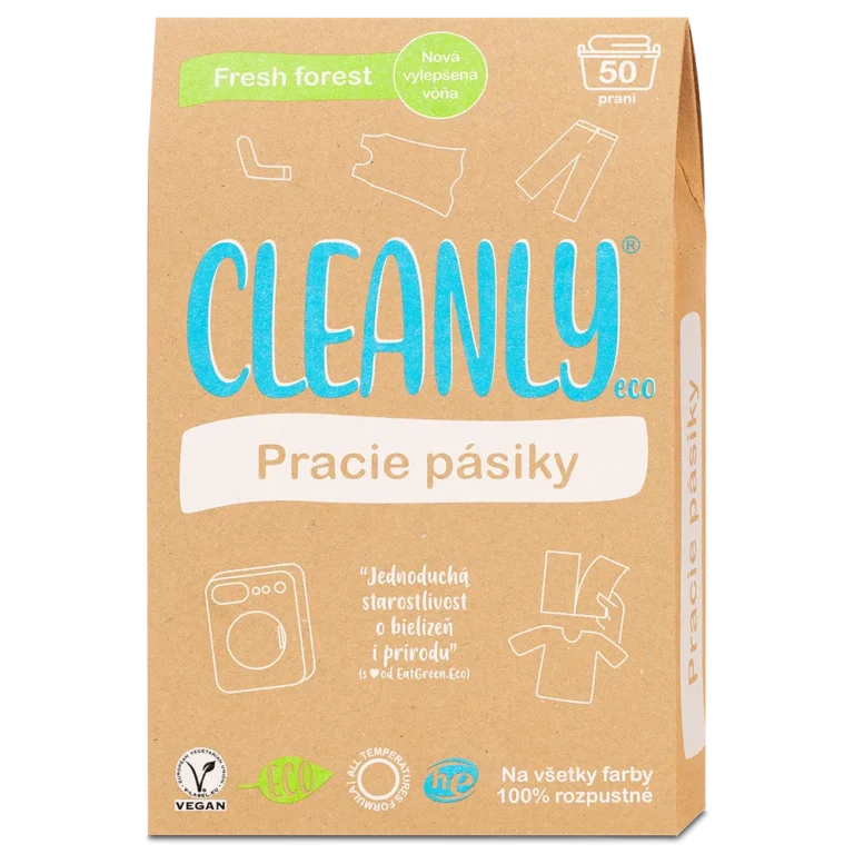 Pracie pásiky Cleanly eco s vôňou Fresh Forest, ktoré umožnia prať ekologicky a šetrne, sú praktickou alternatívou k tradičným pracím prostriedkom. Jednoduché a ekologické pranie bez zbytočného odpadu, šetrné k prírode. Vhodné na farebnú a bielu bielizeň, pre najmenších, pre citlivú pokožku.
