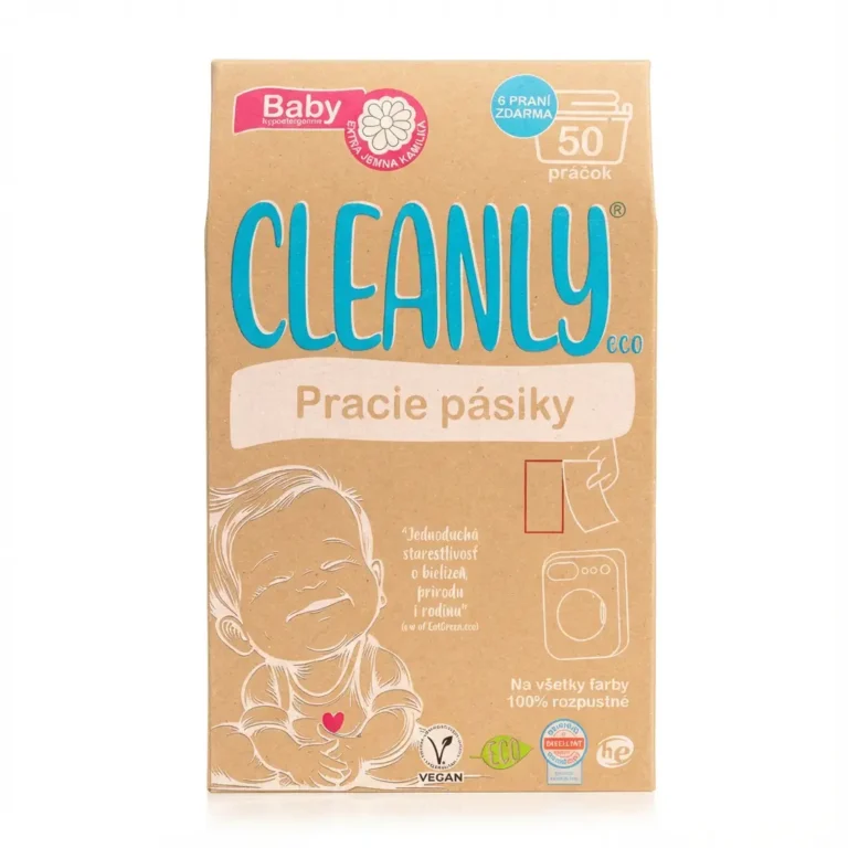 Pracie pásiky Cleanly eco s kamilkovým extraktom pre deti sú ideálnou voľbou pre mamičky, ktoré chcú prať šetrne, ekologicky a s maximálnou starostlivosťou o citlivú pokožku svojich najmenších. Extra jemné zloženie obsahuje výťažok z kamilky, ktorá je známa svojimi upokojujúcimi a protizápalovými účinkami. Táto kombinácia robí pracie pásiky ideálnymi pre deti s citlivou alebo atopickou pokožkou, navyše zanecháva bielizeň čistú a jemnú na dotyk bez zbytočných chemikálií.
