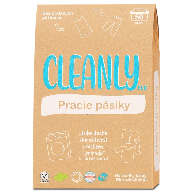 Pracie pásiky Cleanly eco bez pridaných parfumov, ktoré umožnia prať ekologicky a šetrne, sú praktickou alternatívou k tradičným pracím prostriedkom. Jednoduché a ekologické pranie bez zbytočného odpadu, šetrné k prírode. Vhodné na farebnú a bielu bielizeň, pre najmenších, pre citlivú pokožku